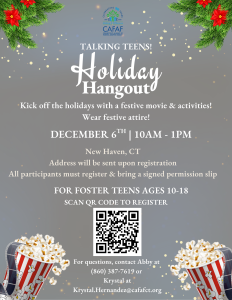 Join other foster teens for a festive movie and fun holiday activities — and guess what?