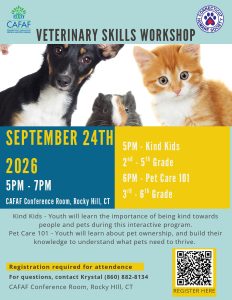 Join CAFAF and the Connecticut Humane Society for a fun and interactive Veterinary Skills Workshop designed for youth!